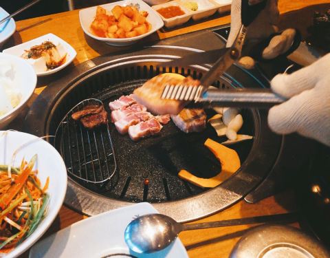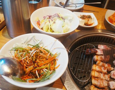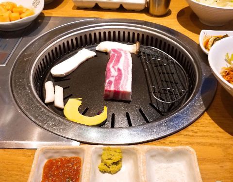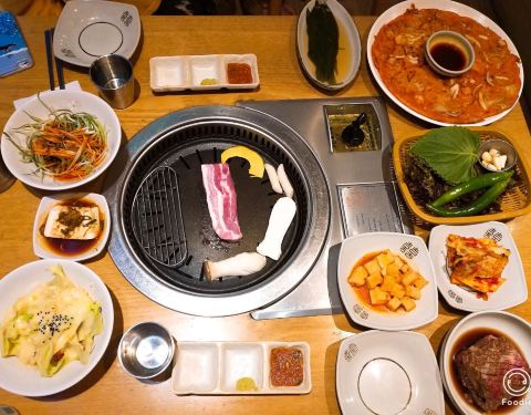 超级好吃的韩国烤肉的,跟国内的韩国烤肉店感觉有很大的不同的,喜欢之种有烟火气的烤肉的,人挺多的,最好提前预定才水用在门口等位置的