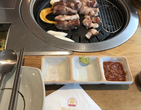 这家烤肉店在明洞很有名,去尝试了一下果然很棒啊!店面还挺大的呢,还有包房,也好适合聚餐哈哈哈肉都是腌制过的还有专门的人来烤呢。店员烤的很好吃,牛肉烤的刚刚好,超级嫩!是我喜欢的味道,无敌满足了~对比了一下别家店,这家的烤肉还是相对实惠些的。下次还想吃一次。极力推荐牛里脊噢!