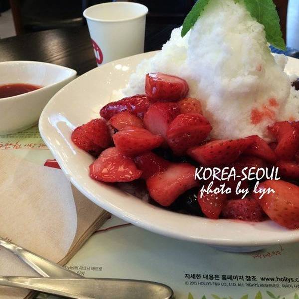 每次经过这家coffe,就看到广告牌上面的刨冰,好像好赞的感觉。事实上证明就是卖相好看,吃的话就一般吧。不过真的很冷。包括上面的草莓也好像刚从冰冻室拿出来一样。全身上下只剩下一万韩币左右了。吃这个刨冰花了6000韩币。毕竟是最后一天了。总得尝尝。