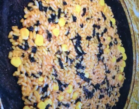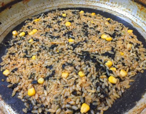 - 如果是两个人来吃的话,绝对是很足的量。海苔的香脆感完全渗入炒饭,让人吃了直呼过瘾