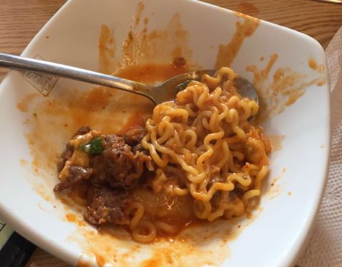 非常推荐,相当不错,韩国本地人也很多 1,首先4500的配料是按照人头点,几人就点几份奶酪或者烤肉 2,萝卜干超级好吃,随意加,我吃了好多萝卜干 3,店内有热水供应,还不错呢 4,店内支持中英文服务,超级棒