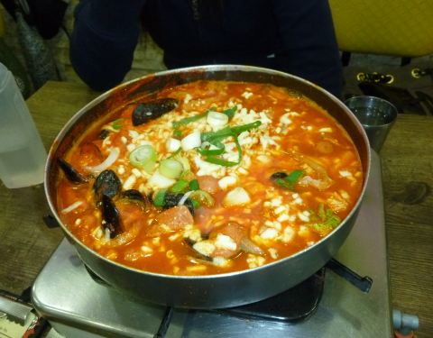 这家韩国料理店生意也太好了!店铺位于三清洞,人气之旺经常要排上一个小时才能有座。我们那次就排了足足半个多小时,这边提供五种辣炒年糕和十一种追加菜。其中人气最高的就是奶酪辣炒年糕和海鲜辣炒年,奶酪的香甜和海鲜汤的爽辣让我停不下来呀,好吃到无与伦比!