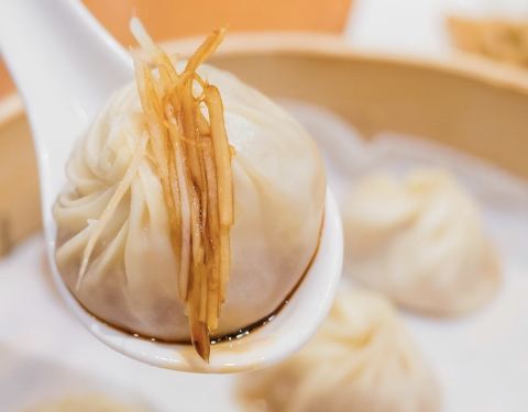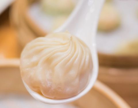 - 鼎泰丰最有名的 当数有着18折的黄金外皮的小笼包 夹起来一颗的重量也满沈的 感觉得到里面汤汁非常饱满