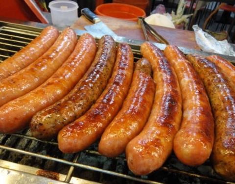 每天新鲜现灌的大香肠,香烤现煎后,会发出香香的味道,红润好吃模样,加上带有辣劲的蒜头,那股香辣劲可真是过瘾!