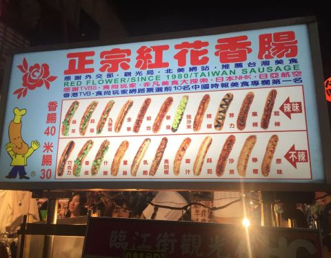 台北士林夜市最经典的烤香肠,台湾的香肠和珍珠奶茶一样的出名!有糯米肠和肉肠选择,口味偏甜,很有嚼劲,主要是调料特别赞!好好吃!