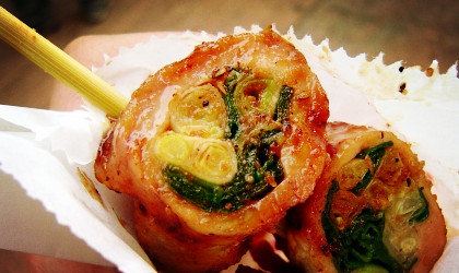 士林是个好地方,人多,吃的也很多。看到这家店有香肠,要吃上几串。点了猪肉串,看着店员在考着肉串,我突然怀念起宿舍四年烧烤夜宵,对这肉更有期待了。这肉串很香,外层的培根烤得外圈是脆香,还有点嚼劲,而...士林是个好地方,人多,吃的也很多。看到这家店有香肠,要吃上几串。点了猪肉串,看着店员在考着肉串,我突然怀念起宿舍四年烧烤夜宵,对这肉更有期待了。这肉串很香,外层的培根烤得外圈是脆香,还有点嚼劲,而内圈的肉是软嫩多汁的。看看里面葱烤得很翠绿,和肉一起入口就是主演脆爽的角色。再买了份香肠,一根香肠很粗,看着就觉得肉很多很足的。烤完后麻烦叔叔切成片,小口吃着,很有嚼劲还有点炭烤味。外层的皮烤得硬硬的,和里层的肉正好相适宜,想再吃一点。