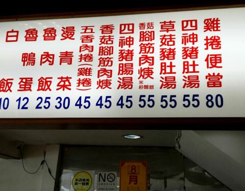 我們點了滷肉飯、香菇肉羹飯、五香肉卷和四神湯,很傳統,也蠻好吃