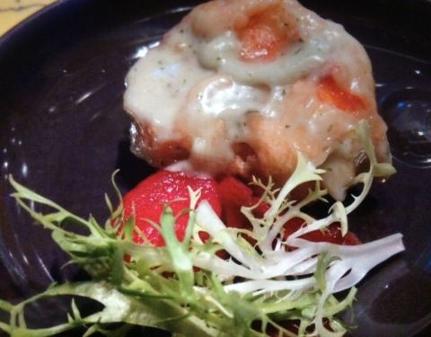酒吧气氛蛮好的,鸡尾酒的味道很正!提供Bruschetta這種西班牙小酒館常見的小點,法國麵包切片上擺佐料食材。我們點的是老闆推薦的伊比利火腿,搭配一小球哈密瓜,底下墊上一片芝麻葉,外觀漂亮但食用起來比較不方便,畢竟嘴巴不夠大,要一口把整份食材一起吃進去有點困難,要讓哈密瓜、火腿與芝麻葉三者融合,比較不容易,嘴巴小一點的大概就得分開食用,這點會比較可惜。畢竟哈密瓜還是得配上火腿的鹹,鹹甜配合才凸顯滋味。食用上是比較不便,不過火腿品質還算不錯,沒有油耗味,口感也潤。