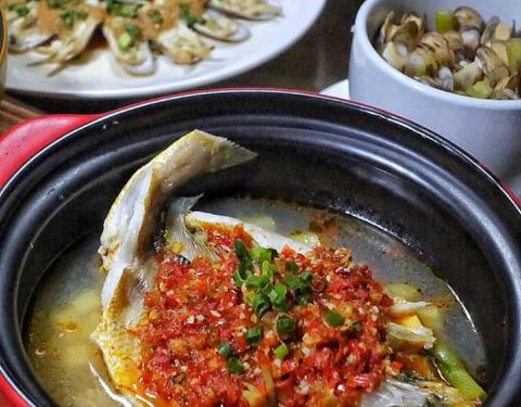像多头蛤蜊,质地肉质,口感丰满多汁。招牌菜是蛤蜊之王。还有边肉汤,百秒炖黄花鱼