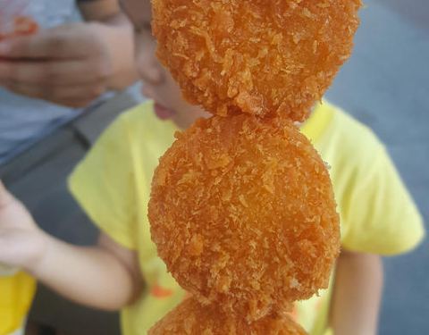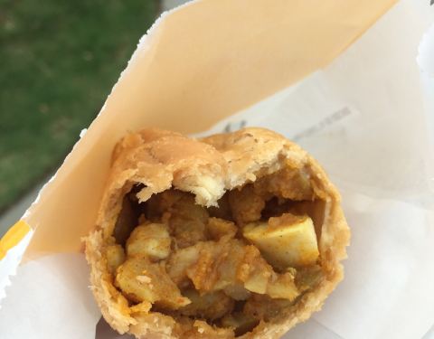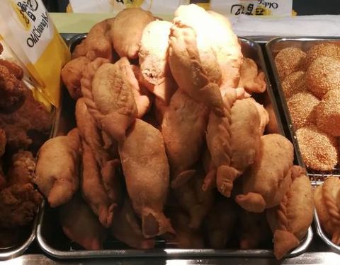 - 非常好吃的一款小食,我买的是店家推荐的咖喱的。外面簌簌脆脆的,里面是咖喱土豆馅儿和大壳儿,很好吃