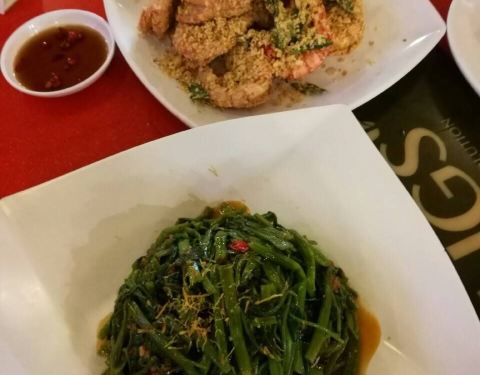 来牛车水,熙熙攘攘的人群让人摸不到方向。又是饭点,就在附近觅食,似乎这家还行,开起了坡县第一顿蟹餐! 黑胡椒蟹:黑胡椒酱汁味道不错,蟹壳好厚好硬。 麦片虾:稀饭外面那层香甜脆的麦片。 空心菜,感觉好久没吃到蔬菜啦!赞。 莱姆水很好喝。 大排档的环境,服务热情。