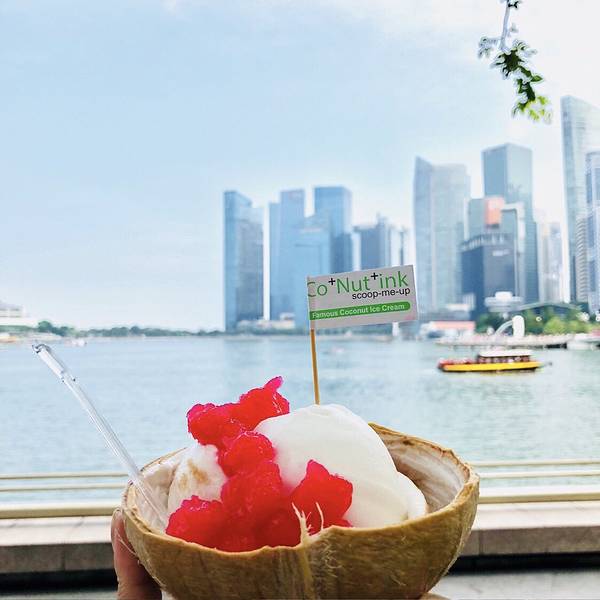 Co Nut Ink 专门用🥥做的冰淇淋小店,半个🥥壳放冰淇淋,可自选果肉,还会送杯椰子水。人均6.8新币,在去鱼尾狮公园路上就会看到有售卖