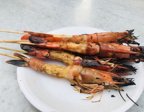 这里的食物也比较多的是烧烤的。烧烤海虾,值得推荐。