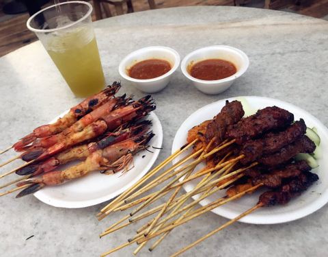 在老巴刹外面的7号和8号摊位 还能蛮好找的 我们六点半过去的 可以点餐但是说七点多才可以做好 因为6:45开始烤 两个人选了最小的set A 10串鸡肉 10串牛肉 和6串虾 一共26sgd 我和小伙伴都觉得牛肉串最好吃 沙爹还...