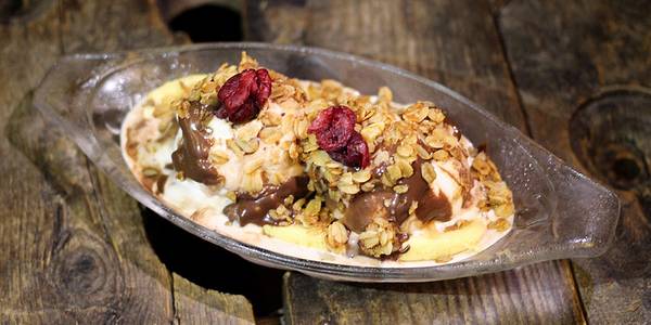 看门头想不到这家是吃法国料理的。里面的汉堡做的很好吃。我把它分解开来,里面的料很多。波罗培根还有牛肉都有,吃的很满意,层次感也强。