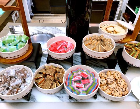 - 给我们安排了很好的位置,食物种类丰富,不是单一的菜色,可以找到很多不一样的甜品,更换碟子很勤快...