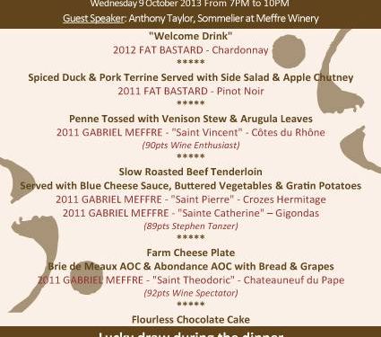- French Wine Dinner - 9th October @ 7 p.m. - Boo...