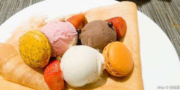 可丽饼配马卡龙、冰激凌