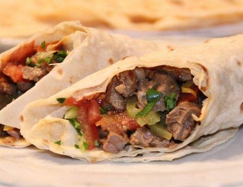 就像卷饼一样,里面有牛肉或者羊肉碎粒切成小小的一块块,嚼起来非常香,而且鲜嫩多汁,并也非常有嚼劲,感觉是手工做的,配上咸金桔,柠檬,气息很好吃。
