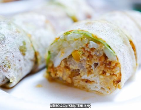 这边的薄饼和台湾的手抓饼有一点点的类似,但是皮是嫩的,不酥脆