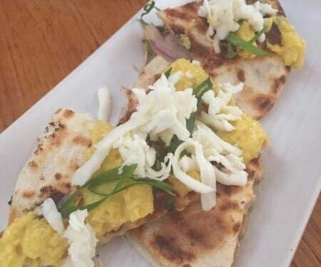 Macadamia and cashew nut chorizo tostadita, cashew crema, pico de gallo