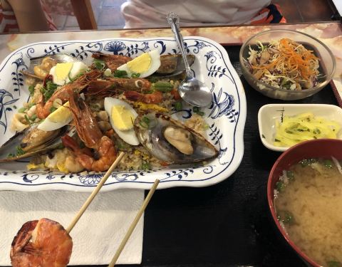 - 份量十足 海鲜饭好吃,烧烤也不错虾很新鲜 店里还有折扣,这么多人民币400多偏贵但在海外在岛上...