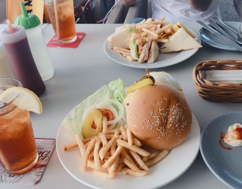 沙滩的一家酒吧,中午过来的,有空调,里面的牛排味道挺不错的,就是铁板牛排会有一点点老,薯条味道一般般,荷包蛋鸡排味道不错。