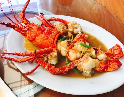 老板是中国人~~来之前没有电话预约,因为到的比较早 还没有其他客人,在毛球真的是分分钟想念国内的美食 ~酒店每天喂兔子一样的各种沙拉跟一盆盆酱状物,粗 狂的大块肉真的不适合中国胃。水煮东星斑,听起来 还真是奢侈啊,哈哈哈整一条~蒜蓉龙虾来一只,这边 是真的野生龙虾看的到哦~味道自然是鲜美,每个海岛 都有各自的特色,最后说一句梨子汽水超好喝