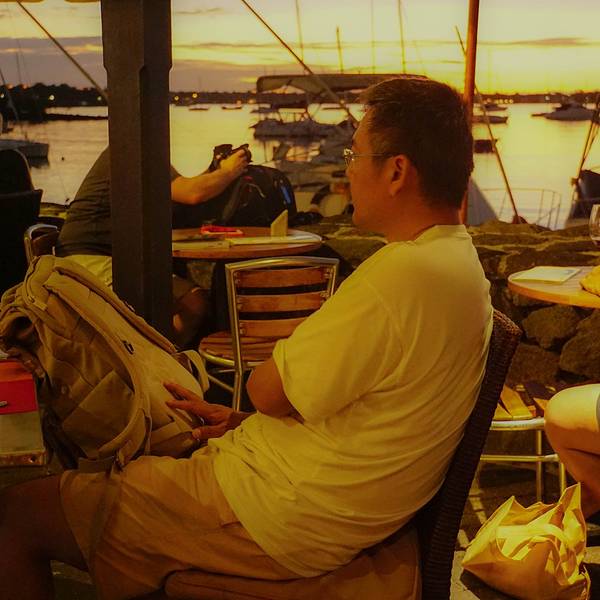 在大湾镇的海边,Sunset购物中心的后面,有一家Sunset Cafe。之所以叫Sunset,就是因为在日落时分,坐在这家咖啡店里可以清楚地观看整个日落的过程,非常美。 毛里求斯很奇怪,各大餐厅的晚餐都是19:30才开始进场...