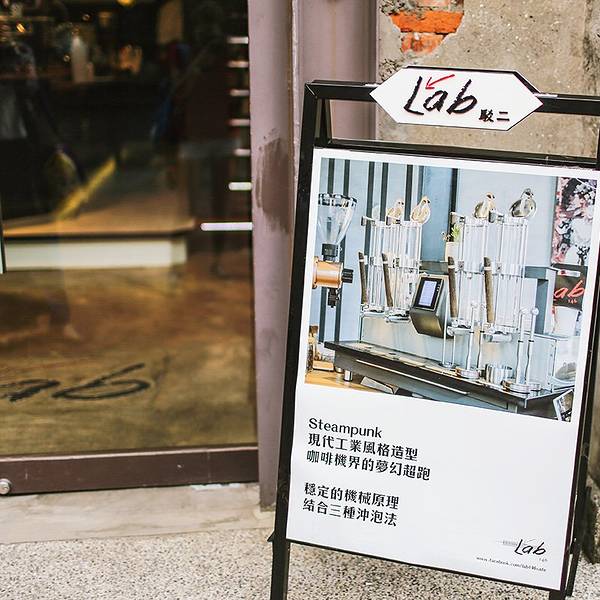 在这么一个文艺氛围爆棚的地方,一定会有不错的咖啡店。在驳二进门的服务中心里可以拿到一个艺术区的地图,上面就列出了一些不错的咖啡店,其中一家叫“Lab”,这是Lab咖啡店的第二分店。他家出名的是咖啡机界的超跑Steampunk,据说价值40几万,它的高科技在于可以集手冲、虹吸和法压三种于一身,而且可以记录每一支豆子最佳的冲煮曲线,可以让每款豆子每次都有相同水准的萃取。
