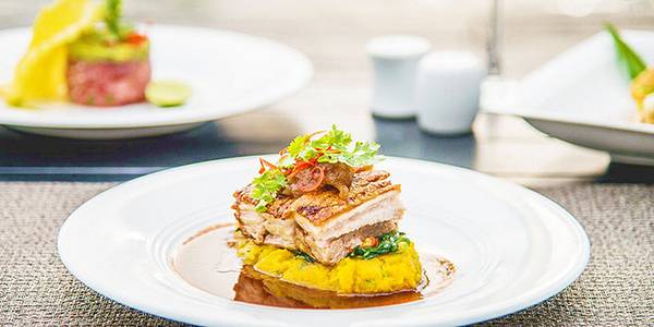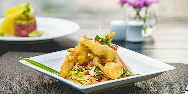 食物品相很好,就是价格有点不尽如人意。鱿鱼做的很难吃,但是酱汁还不错。脆皮金挞还是非常好吃的。五花肉实在是太肥太油腻了,外皮没有我想象中酥脆。咖喱做的干辣椒海鲜味道还可以,但算不上出类拔萃。这里的...食物品相很好,就是价格有点不尽如人意。鱿鱼做的很难吃,但是酱汁还不错。脆皮金挞还是非常好吃的。五花肉实在是太肥太油腻了,外皮没有我想象中酥脆。咖喱做的干辣椒海鲜味道还可以,但算不上出类拔萃。这里的鸡尾酒很有创意,但喝起来像是果汁,但价格太高了。
