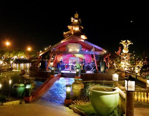 餐厅不错,离机场很近,周围的环境有点像游乐场,还有飞机的升降,有点吵,很多当地人光顾,室内还有歌舞表演,很多泰国特色的装饰,食物比装修失色了,服务很热情,笑容满面的,食物都是泰国特色的,口味也挺正...餐厅不错,离机场很近,周围的环境有点像游乐场,还有飞机的升降,有点吵,很多当地人光顾,室内还有歌舞表演,很多泰国特色的装饰,食物比装修失色了,服务很热情,笑容满面的,食物都是泰国特色的,口味也挺正宗,食材也很新鲜,不过价钱真的高了。