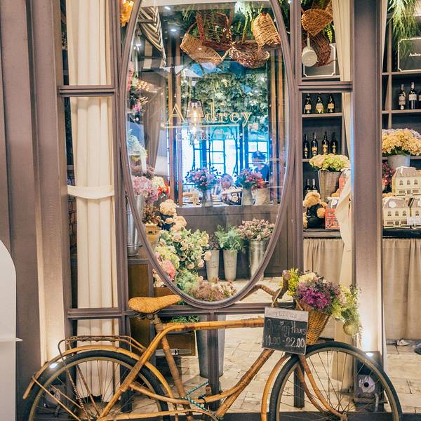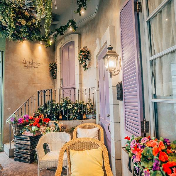 看着窗外的雨并没有要暂停的趋势,于是我们干脆放弃了外出的计划,索性再找一家咖啡厅休息一下。辗转之下来到了这家。 Audrey Cafe des Fleurs 地址:Emquartier, 8F, Bangkok 10110, Thailand 交通工具:乘坐BTS到Phrom Phong 站步行到商场里 开放时间:11:00-22:00 天花板上垂吊的花篮,马克龙色的欧式装修,让人仿佛走进一个秘密花园。这就是Audrey Cafe给我的第一印象,相比前面的复古和浪漫,这里更加小清新一些。入口的复古自行车走进门的入口处就被鲜花簇拥着,桌子上摆放的小特产也是可以买了带回家做伴手礼呢。鲜花簇拥的入口就连服务生穿着也颇有讲究,穿着女仆装和这里的用餐氛围更加搭配和谐。穿着女仆装的服务生谁能想到在餐厅最隐藏的深处还能有这么一片宽敞而没人打扰的地方呢,我们果断包场了这里,这个角落感觉也是拍照最好看的地方,宽敞又明亮。最适合拍照的角落Audrey Cafe des FleursAudrey Cafe des Fleurs餐厅最隐藏的深处,没人打扰的地方因为刚吃过午饭的原因,我们就没有再点正餐了,只是点了一杯饮品和一壶茶,在城市的高处静静的听雨声发呆。 我点的是靠颜值支撑的彩虹冰饮,事实证明它还真的只有颜值,好在它让我在这大雨滂沱的天里找到了一丝安慰,那是属于匆忙的旅行中的片刻安宁。彩虹冰饮妹纸点了一壶英式伯爵红茶,我还笑她居然来这里点红茶喝。难得的休闲一刻,倒让我有了又回到从前在 深圳 工作的周末时光。妹子点的英式伯爵红茶有时候觉得命运是个很神奇的东西,能将两个天南地北的人的紧紧联系在一起,和妹纸的认识属于一见如故型,生活在 广东 的她因为老家在 重庆 ,所以性格里融合了 广东 妹子的贤惠和 重庆 妹子的直爽,和我很是投缘。因为她的工作也是各地出差到处跑,我的职业也是一样的属性,所以这些年尽管我离开了 深圳 ,我们的见面次数一点也没有因此减少。谁说一定要情侣出游才够甜呢,能和喜欢的姑娘们一起出门,也是一件非常开心的事情呀! 比如 ,我们的节奏就很一致,才不会因为到底是拍照比较重要还是睡觉比较重要而争吵~Audrey Cafe des FleursAudrey Cafe des FleursAudrey Cafe des Fleurs