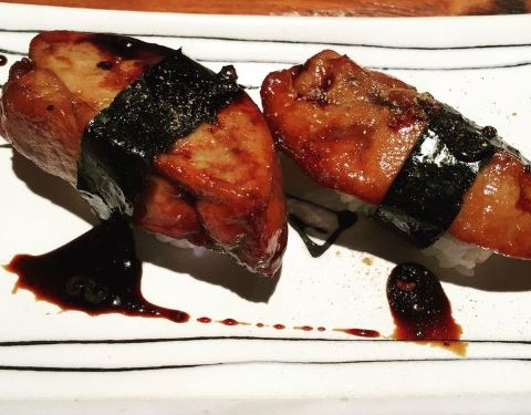属于日本的创意寿司,里面的鹅肝寿司挺不错的,天妇罗做的挺地道的,还有巧克力寿司,各种东西都有,有英语菜单,其实日文的也看的懂。