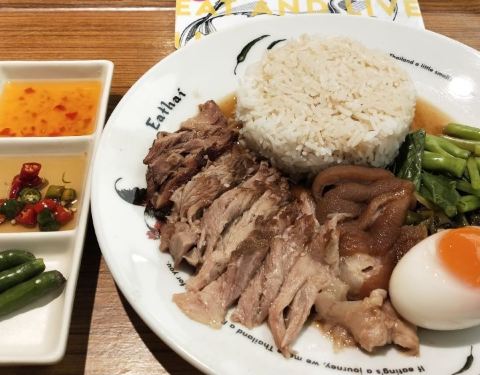 做的是泰北的菜,里面的猪脚饭不错猪脚很嫩,分量也多泰北的鱼丸米粉也很好吃,还有海南鸡饭哦,真的非常适合口味不同的游客来吃。