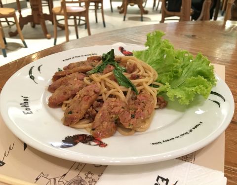 ร้านขันโตก. ผัดสปาเก้ตตี้ใส้อั่ว รสชาติเค็มมากก...