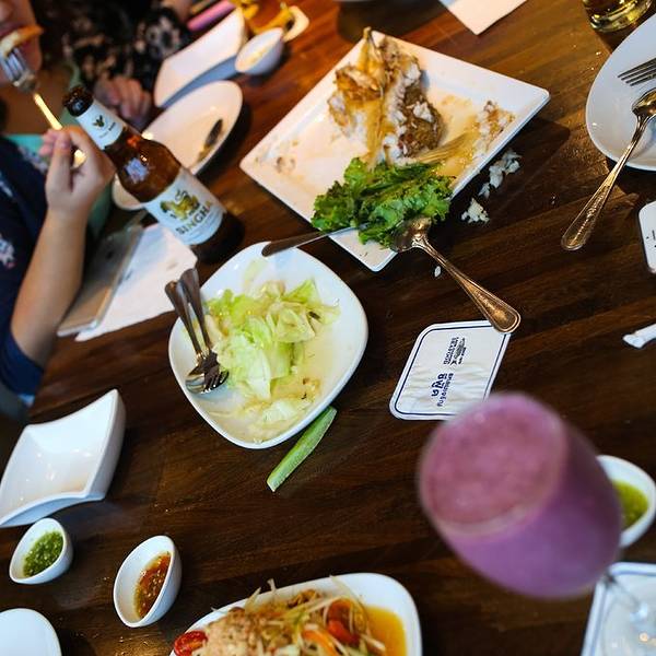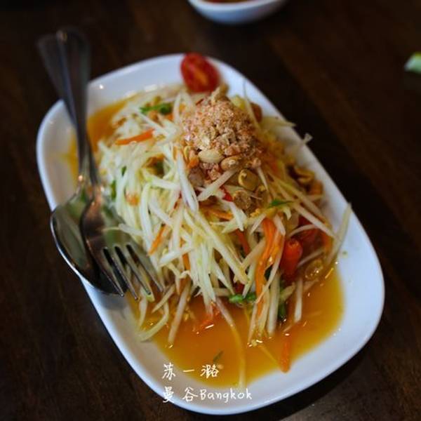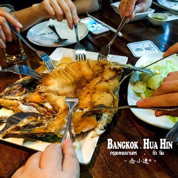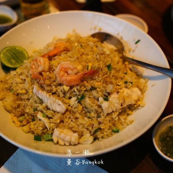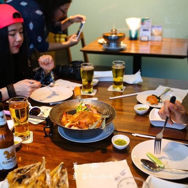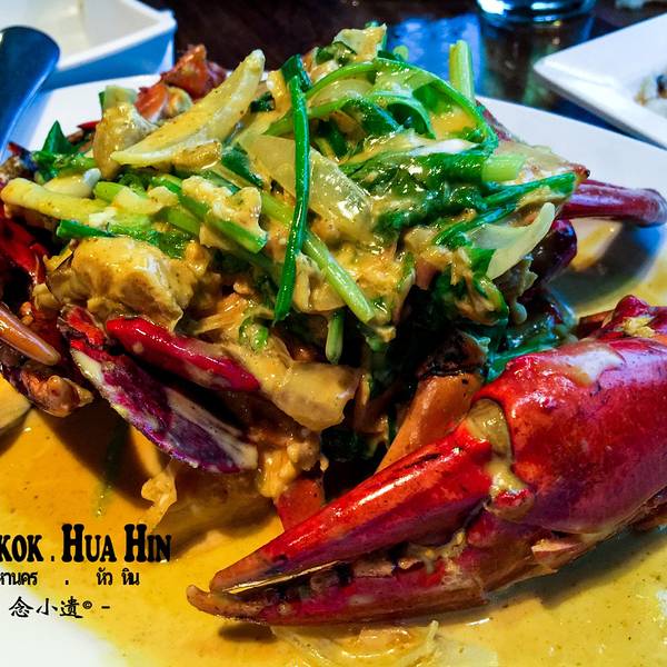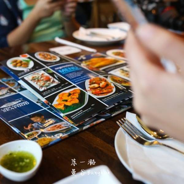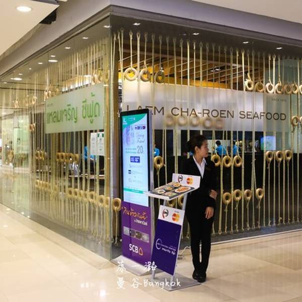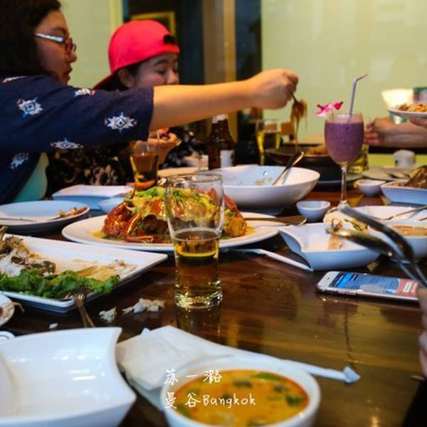 地址:Central World, 3rd floor, Bangkok, Thailand (Siam)。曼谷中央世界购物中心 Central World Plaza三楼。 电话:+66-81 664 6662 人均价格:700泰铢(约130人民币) 推荐菜:炸鱼、咖喱蟹、粉丝大虾、木瓜沙拉、咖喱鱼饼等 这家餐厅在Central World三层,主打海鲜,我们是在攻略上看到这家店的,推荐度很高。招牌菜有:某只整炸鱼(忘了名字了呃,肉质酥脆,吃完就难以忘怀)、咖喱鱼饼(泰国特色菜,浓浓咖喱味,带有一点辛辣)、咖喱蟹(蟹腿肉非常多!)、粉丝大虾(吃完一次还想吃第二次!)、卷心菜(就是清爽口感)、冬阴功汤(泰国特色,爱喝的人很爱,不爱喝的人很不爱!)、木瓜沙拉(泰国特色,有点辣哟~但是口感很清爽~~吃多了海鲜,再吃点木瓜沙拉可以调和一下哟~)等。餐厅占地面积很大,环境很好,食客也很多,服务员还会说中文,点菜没有语言障碍,上菜也很快。我们9个人,点了人均700泰铢,大约130元,吃了这么多海鲜,有与有虾有螃蟹,这个价格不算贵啦。