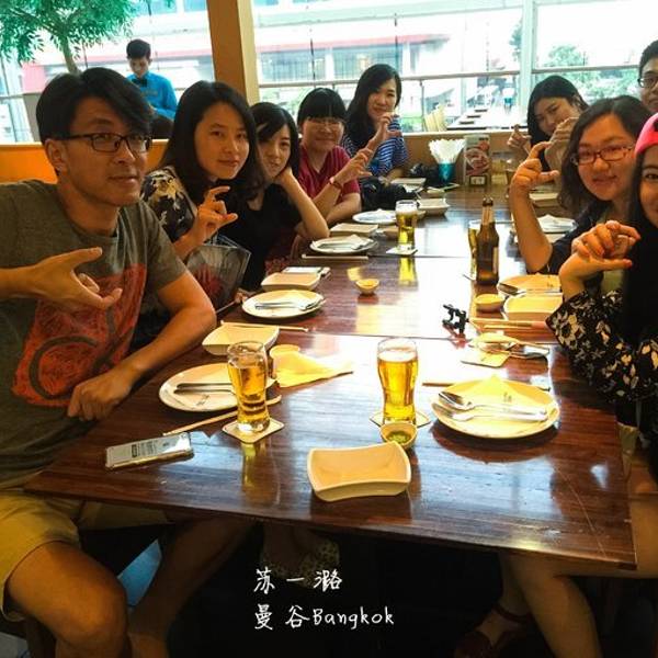 到了泰国吃什么?还用问么,第一顿怎么也是泰餐呀 一行人APP搜索最终决定这家Laem Cha-roen Seafood Restaurant 首先菜单就让人耳目一新,馋虫作祟!观景位的大落地窗时尚,窗明几净,看着就通透~准备!吃!饭!鱿鱼,个人觉得没什么味道鱼饼,某人吃晚饭看手机的时候,发现自己拍了,却没吃!哈哈哈。。。好吧。。。看出饥饿感了嘛哈哈哈哈哈哈,好欢乐的一堆叉子!炸鱼金黄酥脆,光盘!粉丝虾煲,粉丝特别入味,很好吃吃完忘了。。。冬阴功汤!最爱!有奶香更有泰式辣!和国内绝对不同!炒饭,大家都觉得很好吃!但是所有人都觉得是自己饿慌了闹得。。。咖喱蟹,味道不错,螃蟹也很大,就是吃起来好麻烦。。。某种饮料。。同伴们点的。。。忘了哈哈哈我喝的啤酒(*^__^*) 嘻嘻…… 饱餐一顿,9人食共计消费6000+泰铢,人均100+人民币和国内消费持平 Central World三层,可以尝试~