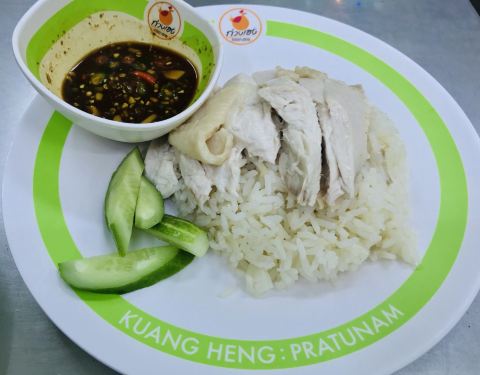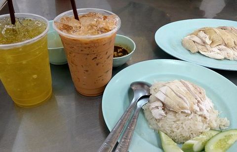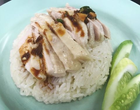 由浸鸡、去骨及油饭等,绝不欺场。海南鸡饭的饭粒既软绵又香滑,鸡肉鲜美、弹牙用上香茅、南姜等香料放入了鸡肉的大锅上煮,令鸡块的味道有不同层次,再配上店家自製的泰式酱油和汤,令你齿颊留香。