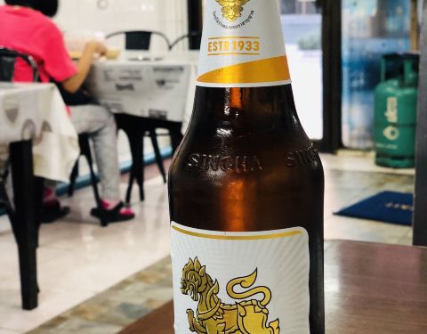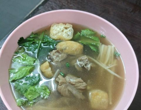 超级喜欢素坤逸这个区域,很多吃喝的地方,酒店也蛮喜欢的,所以来曼谷我一般都住这个地段,熟悉且比较方便。这家是做新加坡鸡饭的,不知道老板是不是南洋人。看看环境还行,淡紫色的,就进去吃点坡国的白斩鸡。都是调味好的,很嫩,鸡肉不错吃,点了一份不要米饭的,加了啤酒,估计这几天喝下来要啤酒肚了。 另外还送了一碗汤,没啥特别的味道,反正又不吃米饭。蔬菜就是空心菜,加了蒜头炒炒还挺好吃的。煎的香菇有点偏干,吃了一半就腻了。