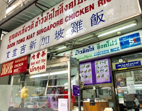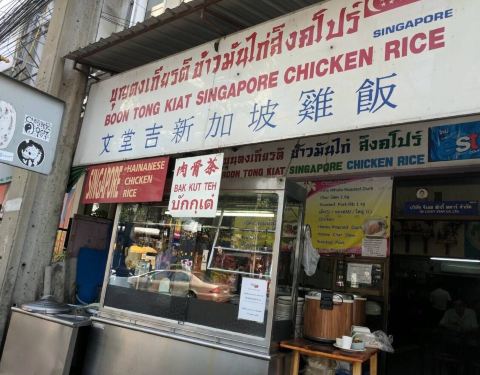 文堂吉新加坡鸡饭是从新加坡来的好味道!历史六十多年的老店,人气不比水门鸡饭差,在泰国本地人当中特别火爆,鸡油饭香而不腻,还第一次喝到肉骨茶,其实不就是炖排骨吗!虽然名气远不如游客爱店水门鸡饭来的响...