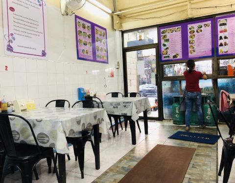 超级喜欢素坤逸这个区域,很多吃喝的地方,酒店也蛮喜欢的,所以来曼谷我一般都住这个地段,熟悉且比较方便。这家是做新加坡鸡饭的,不知道老板是不是南洋人。看看环境还行,淡紫色的,就进去吃点坡国的白斩鸡。...