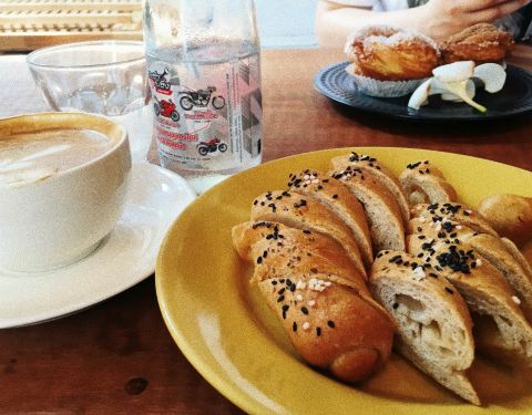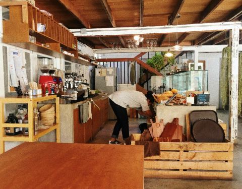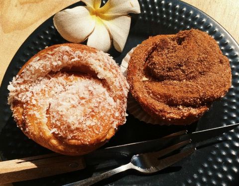 这是曼谷一个烘培坊,不算咖啡馆,一进门看到展示台上的面包,就不可自拔,每一种都想吃。店员很悠闲的自己摆台做咖啡,整个店的氛围都很无所谓。咖啡因为没有抱以任何期待,所以也觉得挺顺口的,而且跟面包搭在...这是曼谷一个烘培坊,不算咖啡馆,一进门看到展示台上的面包,就不可自拔,每一种都想吃。店员很悠闲的自己摆台做咖啡,整个店的氛围都很无所谓。咖啡因为没有抱以任何期待,所以也觉得挺顺口的,而且跟面包搭在一起应该也不会难喝吧,绝对值得推荐给大家,来品尝体验一番。