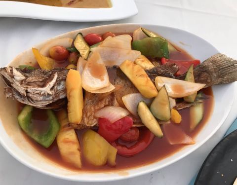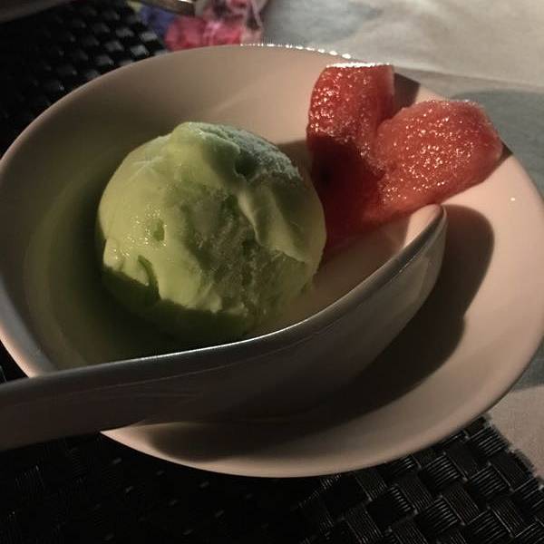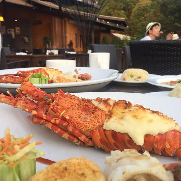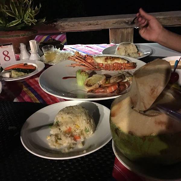 味道还不错。两人点了一份海鲜套餐320元RMB+税,有炒饭、海鲜拼盘、冬阴功汤、蔬菜汤、水果。 都很好吃。蛋炒饭也很赞。海鲜拼盘超级赞!大份,什么都是双份的,有鱼虾蟹乌贼小管淡菜。又很新鲜! 吃得很撑! 强力推荐! 就是没遇上传说中的星期二BBQ自助晚餐。听说很赞很受欢迎!