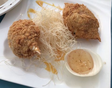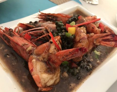 和朋友一起普吉岛旅游,被普吉岛网红悬崖餐厅刷了屏以后心心念念很久,我们人比较多,网上最火的悬崖餐厅看了看照片,肯定坐不下,这家就成了唯一符合的一家。 餐厅就在卡伦中心度假别墅酒店旁,我们从酒店过来还是需要酒店叫车把我们送到这里。 因为担心来的晚看卡伦海滩的好位置就没了,我们5点左右就到餐厅了。 这里的饮料做的是最最漂亮的。「芒果汁」超级大片的芒果嵌在饮料杯上,看着着实非常有食欲。 泰国菜我感觉做的都差不多,只是这家相比卡伦海滩附近的餐厅价格要50[%],菜品总体感觉都不错,最喜欢的是「炸蟹壳」,看似其貌不扬,整个蟹壳里却包裹着满满的蟹肉。「冬阴功汤」这个也是泰国菜的必选,酸酸辣辣的口味吃着炒鸡满足。「黑胡椒黑虎虾」我们大虾点了3种烧法,我比较喜欢黑胡椒口味,浓稠的酱汁配上犹如女孩手掌大的大虾,真是一口感觉都不过瘾。 [环境]最最棒的还属环境,真的是太美了,还好天空晴朗,远处看到了,望着安达曼海,☁️从卡伦海滩上飘过,一群朋友美好的回忆。