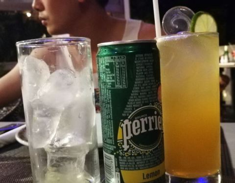 「芒果汁」超级大片的芒果嵌在饮料杯上,看着着实非常有食欲。 这里的饮料做的是最最漂亮的