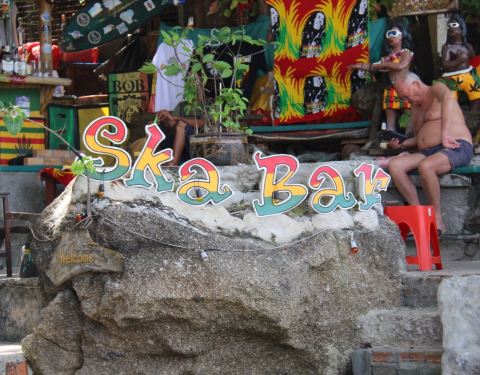 ska bar位于卡塔海滩一角的海岸上,白天海景很漂亮,晚上灯火通明,下午过来点上一杯果汁坐坐也很惬意,bar的旁边就是海鲜馆,其中一家居然有中餐,虽说春卷和锅贴依旧有淡淡的泰国味道,但也令人感到亲切。