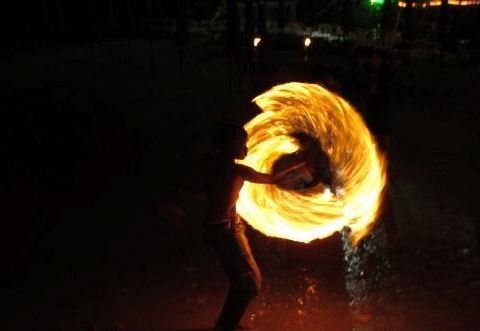 Come after dinner for a free (buy drinks, cheapskate) fire show.