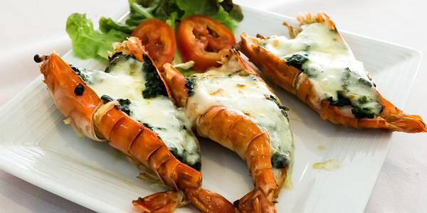 Baked River Prawn with Cheese Spinach