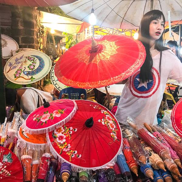 清迈老城Tha Pae Gate为起点,西以旧城区Rajadamnoen路为主轴,绵延数条街区近万摊